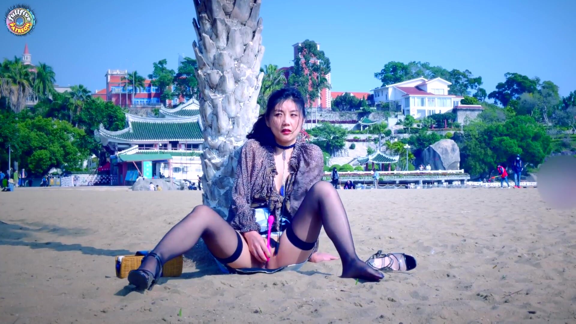 Pixiv celebrity IKEA host 'Fullfive' masturbates outdoors on a wooden bench and beach...