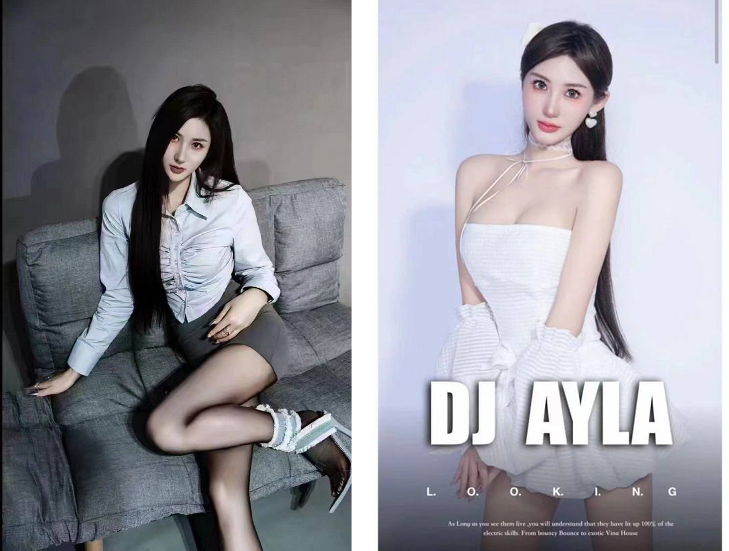 広東省のナイトクラブで、女性DJがスカートの下でディスクをプレイしているところを撮影された。