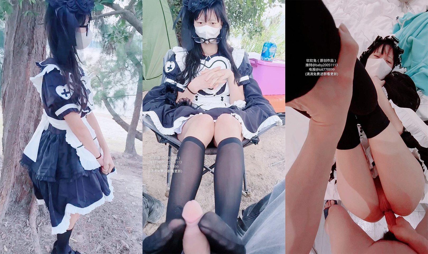 [re3_chil0_] 網タイツワンピースメイドセット+ニーハイ網タイツで色んな体位で犯されて最後は濃厚ザーメン発射