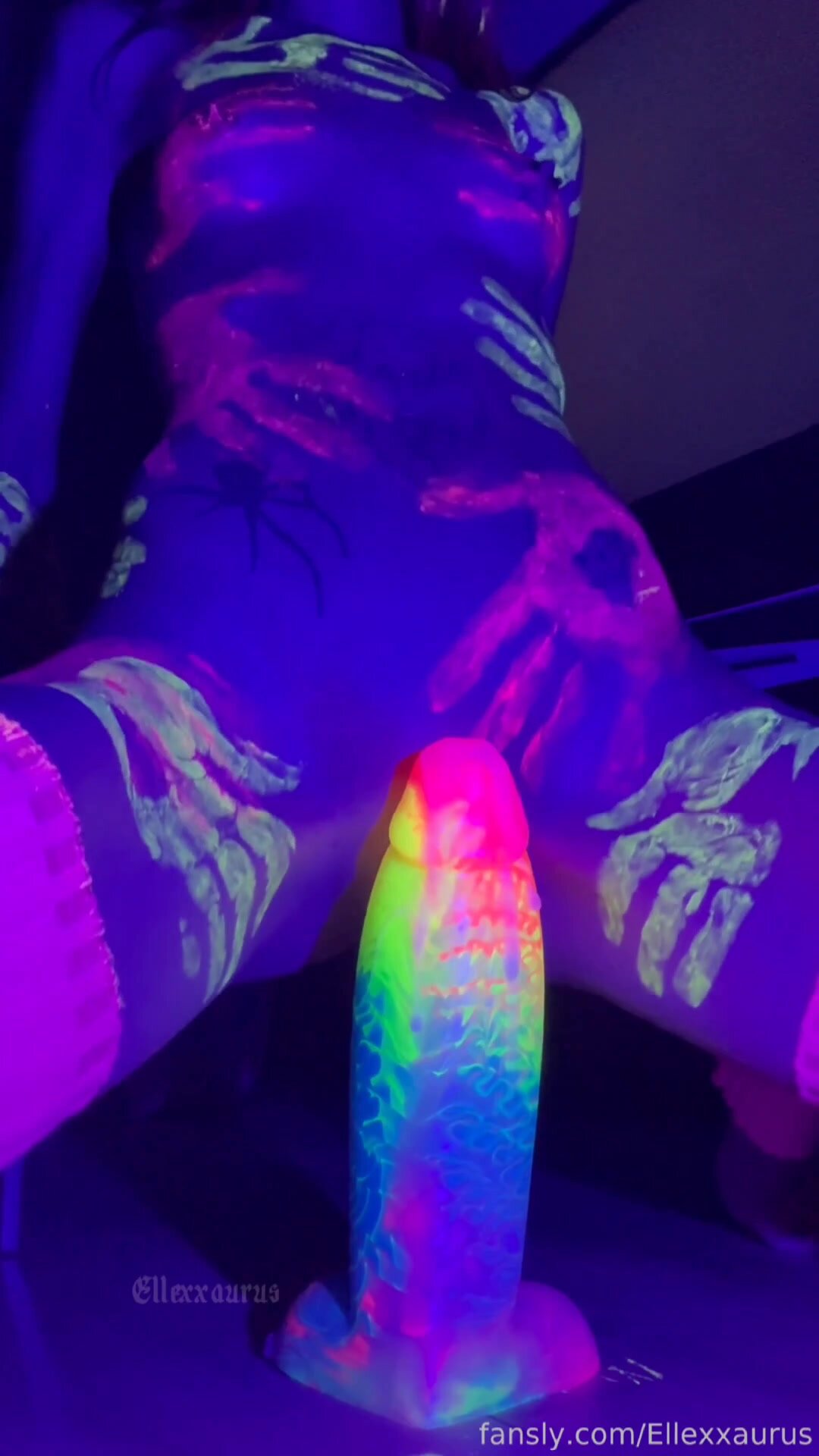 엘렉사우루스 UV 조명과 페인트가 매우 환각적인 느낌을 줍니다. 정말 좋아요. 그리고 딜도가 정말 커요. 이렇게 탄 지 오래 됐는데, 더 필요할까요? ?