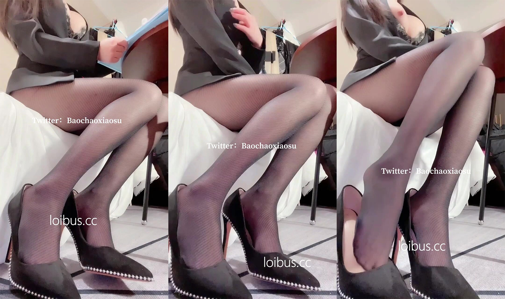 搽搽 毛衣珍珠黑絲