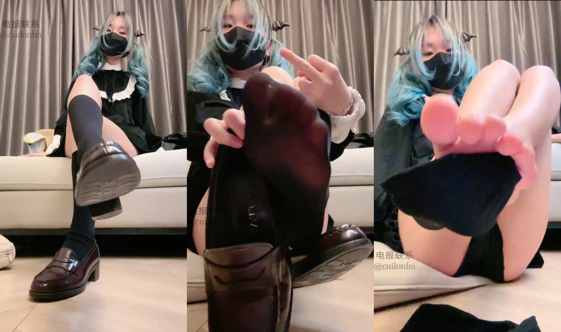 芃芃大人双马尾小恶魔黑袜裸足小皮鞋